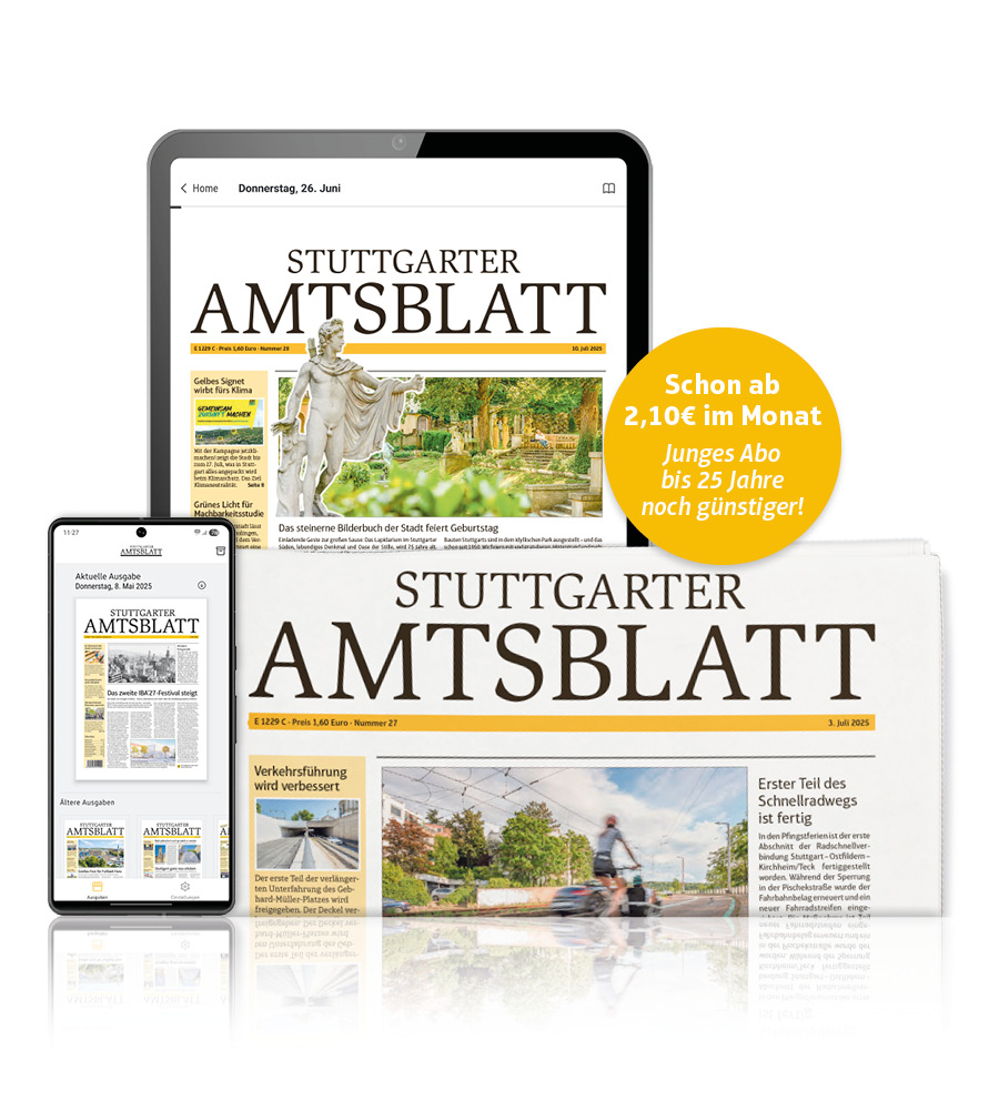 Worüber entscheidet der Gemeinderat, wo wird aktuell gebaut, wann wird der Müll abgeholt oder wo wird gefeiert – im Stuttgarter Amtsblatt steht’s! Als offizielles Mitteilungsorgan der Stadt liefert es die wichtigsten Informationen jeden Donnerstag in gedruckter Form direkt zu Ihnen – oder als E-Paper schon am Mittwoch um 18 Uhr.